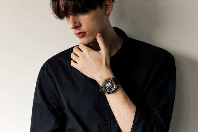 新作の「 AVLIIBronze(ブロンズ)」は、ヴィンテージ・カメラのデザインにインスパイアされケースとベゼルリングはともにブロンズ製で、時間の経過とともに表面にはパティーナ(古色)が生じ、空気、湿度や着用状況による変化で、独自の美しさを醸し出します。儚く変化し続ける美しさ(わびさび)を表現した経年変化を楽しめるモデルです。