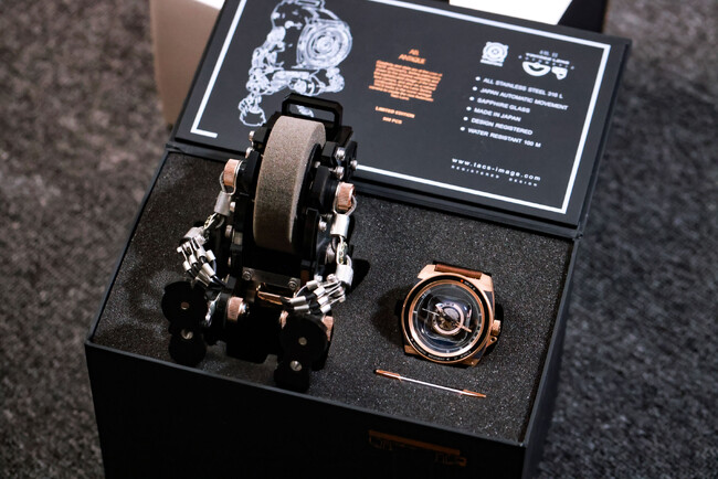 500個限定生産のAVLIIブロンズすべてにシリアルナンバーが入り、ハンドメイドのROBOTOYSが付属、ミニチュアの人型ロボットのような風貌はアートピースとしても使えるでしょう。今回のカプセルエディションは、TACSのファンだけではなく、腕時計愛好家やアートコレクターにとってもコレクティブルなアイテムとなることでしょう。