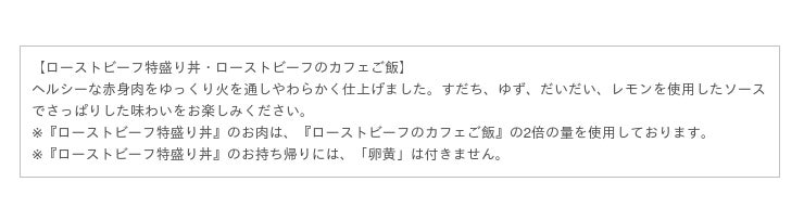 ※ローストビーフ特盛り丼はお持ち帰りできます。