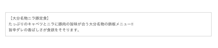 ※大分名物ニラ豚定食はお持ち帰りできます。