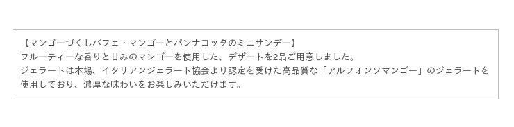 マンゴーづくしパフェ、マンゴーとパンナコッタのミニサンデー