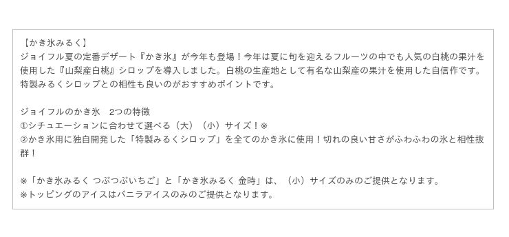 今回の季節限定メニューでは、ジョイフル定番のお得なうなぎやボリューム満点のかき氷に加え、1年をかけて開発したローストビーフやご当地メニュー、マンゴーを使用したデザートなどをご用意いたしました。是非この機会にご賞味くださいませ。