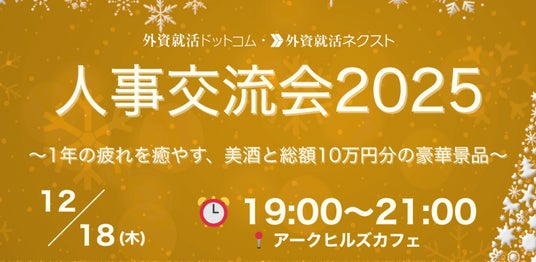 外資就活ネクストでは、新卒採用プラットフォームの外資就活ドットコムと共催で2025年12月18日(木)にハイクラス採用人事交流会を開催いたします。
