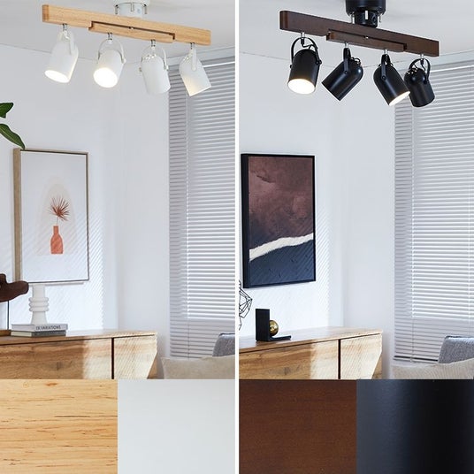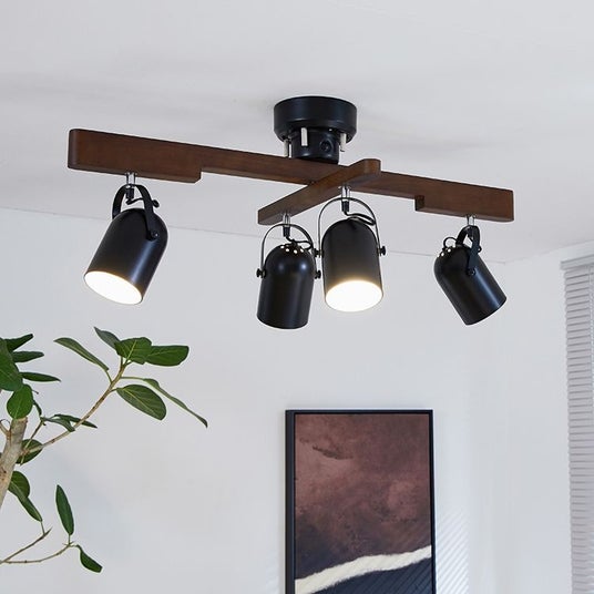 中央の2灯が独立して回転するので、一連型やクロス型など、お部屋の雰囲気に合わせてコーディネートできます。シェード部分は細かく角度調整ができるので、ポイント的に照らしたり、部屋全体で照らしたりと、あらゆるシチュエーションで活躍します。点灯の仕方も「全灯」「両端2灯」「中央の2灯」と3パターン設定ができ、光の演出を楽しめます。