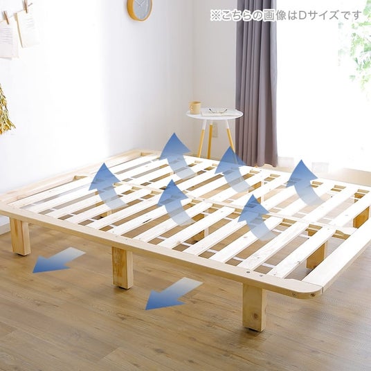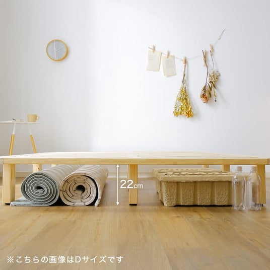 パイン無垢材を使用したすのこベッドで、脚の高さは約22cmあるので、通気性が良く、ベッド下収納としても有効活用できます。