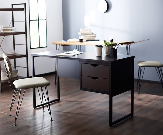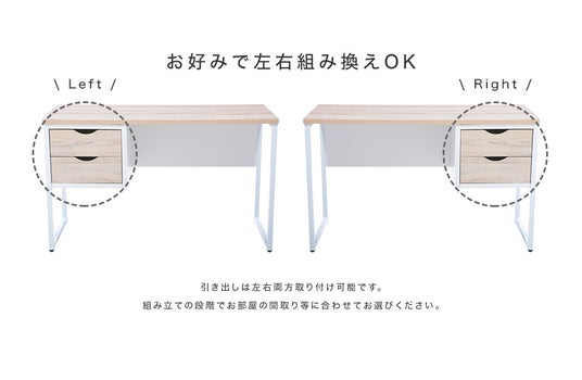 お部屋を圧迫せずにゆったり使える使い勝手の良いサイズ感が嬉しいデスク。すぐ手の届く場所にある便利な引き出し2杯付きで、文具類や小物などを入れるのにピッタリ◎レールは金属製の「フルスライドレール」を採用。引き出しを奥まで引き出せるので、出し入れしやすい設計です。引き出しは左右両方取り付け可能です。お好みに合わせてお選びいただけます。
