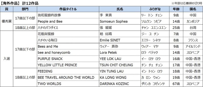 【第9回「ミツバチの一枚画コンクール」受賞者一覧】