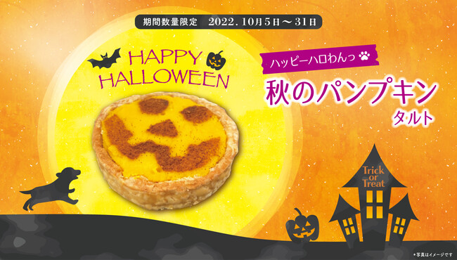 このたびの、期間限定商品『ハッピーハロわんっ!秋のパンプキンタルト』は、ハロウィンを意識したわんちゃん用ごはんとなっております。材料にはカボチャをふんだんに使用し、見た目もジャック・オー・ランタンをモチーフとした可愛らしいパンプキンタルトです。