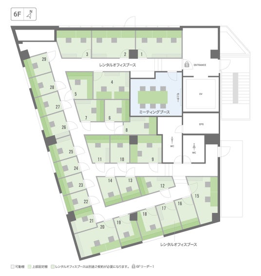 席数:【コワーキングスペース】36席/【レンタルオフィス】29戸