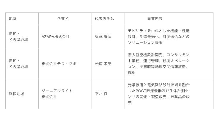 なお、当地域からは、6社が選定されております。(https://nagoya-innovation.jp/program/startups/)