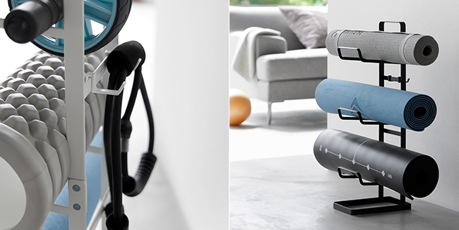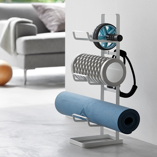 いつも使うフィットネスグッズを一括収納できる便利なラック。