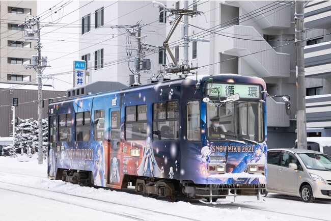 フェスティバル開催に先駆けて、11月19日(土)から、雪ミク仕様にフルラッピングした「雪ミク電車」の運行が決定いたしました。車内ポスターや車内放送も特別仕様となります。運行は2023年3月26日(日)までを予定。冬の街を彩ります。