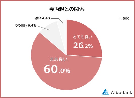 今回、株式会社AlbaLink( https://albalink.co.jp/)が運営する高く売る不動産( https://wakeari-hikaku.com/)は、既婚者500人を対象に「義両親との関係」についてアンケート調査を実施しました。