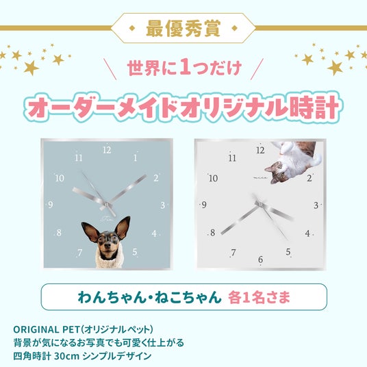 さらに、各賞に選ばれた方には、ペットちゃんのお写真で作る素敵な賞品もプレゼントいたします。