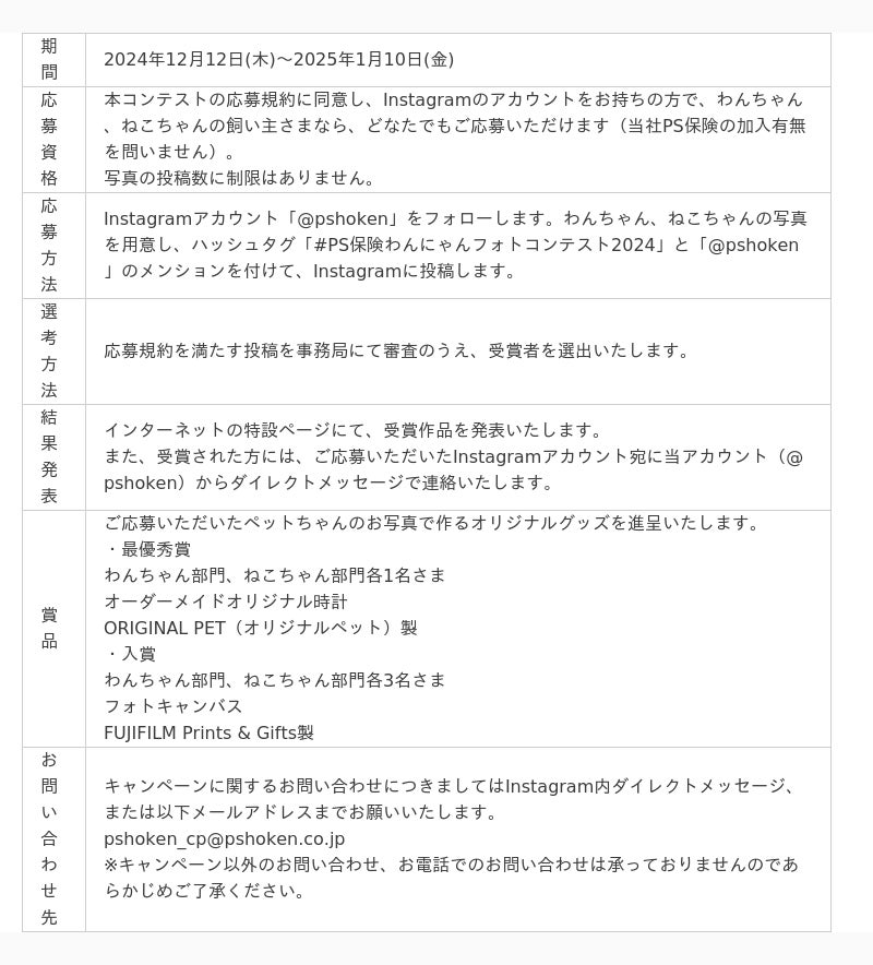 ※詳細は、「#PS保険わんにゃんフォトコンテスト2024」特設サイトでご確認ください。