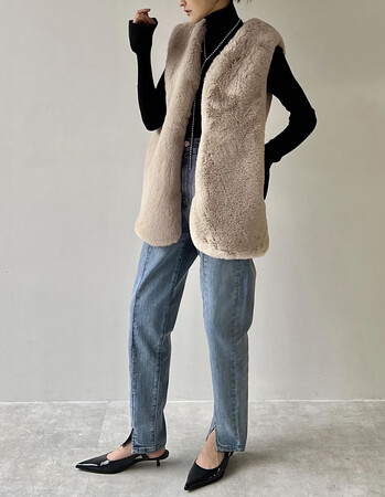 「今日のコーデ何か物足りない。。」と困ったときにぜひ取り入れたいフェイクファーベスト。 シンプルなコーディネートに1枚沿えるだけで、ぐっとシーズンライクなスタイリングに仕上がります。