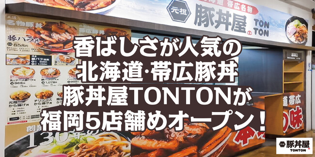 ワンズトライン株式会社(本社:大阪市北区芝田2丁目3番16号、代表取締役:山内仁)は、福岡・小倉に福岡県5店舗めとなる「元祖豚丼屋TONTON リバーウォーク北九州店」(住所:福岡県北九州市小倉北区室町1-1-1 リバーウォーク北九州 4Fフードコート内、TEL:080-9579-3130)を、'23年10月19日(木)オープンいたします。