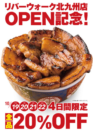 リバーウォーク北九州店のオープンを記念して、10/19(木)~22(日)の4日感に限り、全品20%OFFで提供いたします。