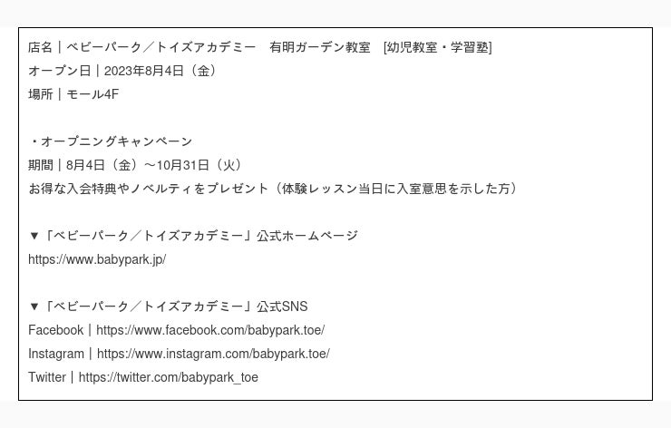 ベビーパーク/トイズアカデミー [幼児教室・学習塾]