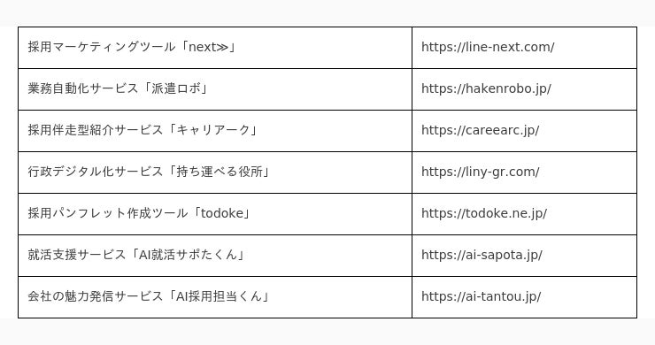 当社は、独自の採用ノウハウを持ち、採用ブランディングや採用コンサルティングを提供しております。また、LINEを活用した採用管理ツール「next≫」の提供、業務効率化を行うサービス「派遣ロボ」、採用パンフレット作成ツール「todoke」等も提供しております。これらのサービスを通じて、市場変化に柔軟に対応できる採用支援を行っております。