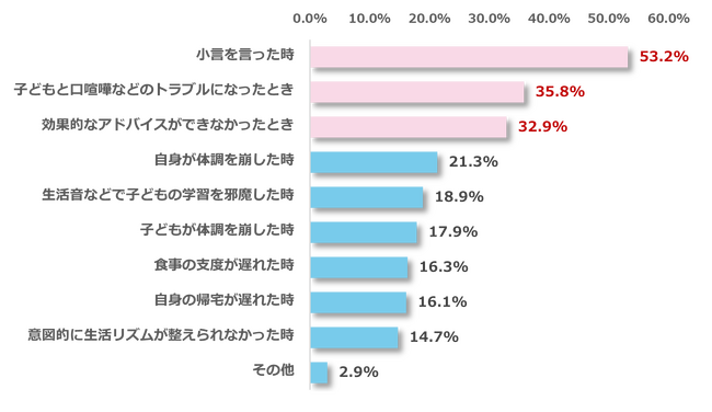 受験生の足を引っ張っていると感じるとき、最多回答は「小言を言った時(53.2%)」