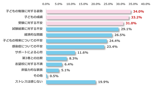 保護者が感じるストレス、最多回答は「子どもの勉強に対する姿勢(34.0%)」