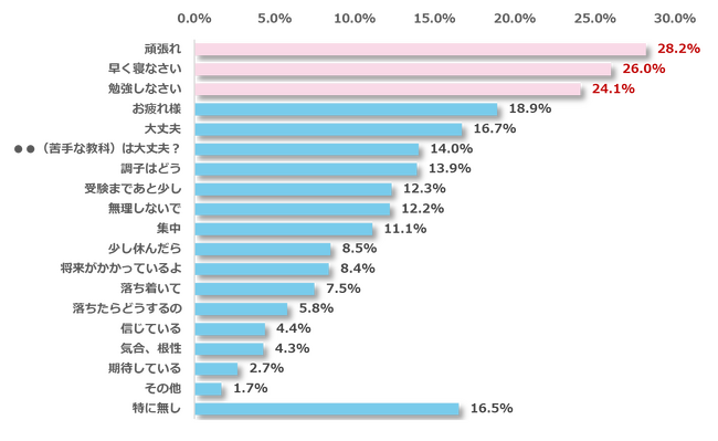 ・保護者が受験生によく言うセリフTOP3、「頑張れ」「早く寝なさい」「勉強しなさい」