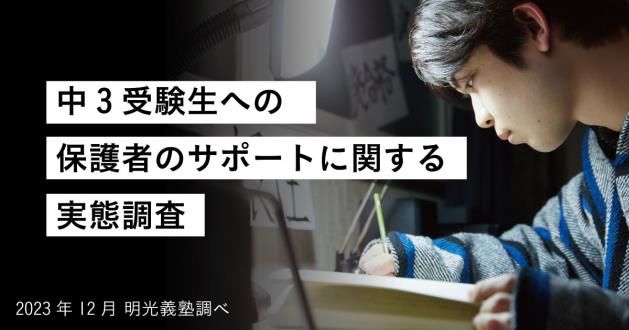 個別指導の学習塾「明光義塾」を全国展開する株式会社明光ネットワークジャパン(本社:東京都新宿区、代表取締役社長:山下 一仁)は、受験を控える中学3年生のお子さまを持つ保護者880名を対象に、「中3受験生への保護者のサポートに関する実態調査」を実施いたしました。