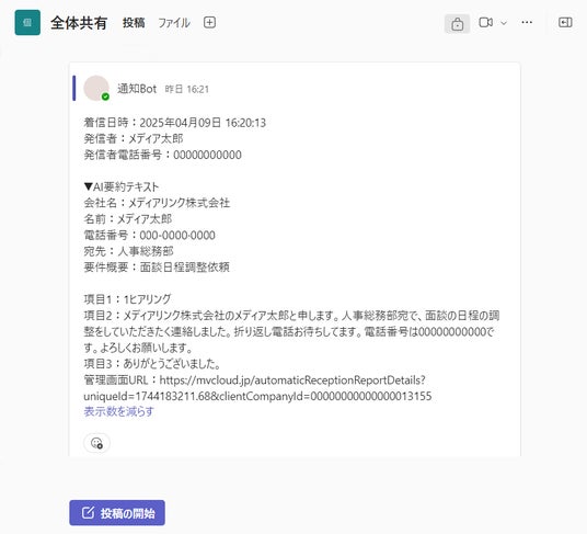 電話対応をゼロにする「DXでんわ」やカスタマーサポートを自動化するAIエージェント「AIto(アイト)」を提供するメディアリンク株式会社(本社:東京都港区、代表取締役:松本 淳志、以下 メディアリンク)は「DXでんわ」において、入電時に活用できるTeams通知機能を追加したことをお知らせします。