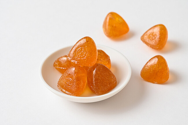 高純度で雑味の無い白ざら糖を、高温の直火で煮詰めることでうまれる有平糖(あるへいとう)。江戸の庶民には高価だった有平糖をもっと気軽に…と、創意工夫から生まれたのが梅ぼ志飴です。以来有平糖の技術を基に、黒飴、抹茶飴、紅茶飴と続き、平成に入り、のど飴やバニラミルク飴が加わりました。また、国産の果物を使用した無香料・無着色の「果汁飴」シリーズも登場し、全11種類のラインナップを揃えています。