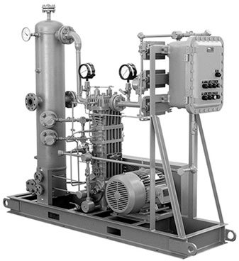 効率的なe-メタン製造に貢献する圧縮機(コンプレッサー)圧縮機は、空気やガスといった気体を圧縮して移送する機械です。常圧より高い圧力環境の提供によって、反応速度が向上し、効率的にメタンを生成することが可能になります。TMXは米国コーケン社のコンプレッサーを日本LPG業界にいち早く紹介し、配管・タンク・制御盤・モーター等を自社工場で組み立て、ユニットとして納入。日本全国の多くの充填所で使用されています。性能と扱いやすさ・保守・メンテナンスサービスにより、50数年来、お客様に安心してご使用いただいています。