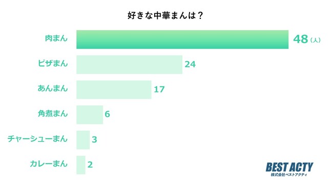 アンケートの結果、「肉まん」と答える人が最も多い結果となりました。