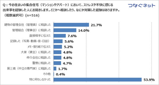 近隣トラブルを経験しても53.9%が「特に何もしなかった」ことが判明しました。