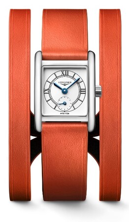 新作「ミニ ドルチェヴィータ」の最大の特徴は、3本のブレスレットを巻きつけたようなデザインのストラップ。洗練を湛えるブラック、品格あるベージュゴールド、華麗なレッド、ポジティブな魅力を放つオレンジ、シックな華やかさを授けるグリーンの5色をラインナップ。快適で柔らかな着け心地のナッパレザー製ストラップには、ロンジンの馬術競技への思いがさりげなく込められ、鞍と馬の鐙(あぶみ)をつなぐ鐙革(あぶみかわ)のように、1から6までの番号を箔押ししています。