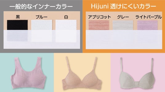 なかでも「ハイジュニ透けにくい」は"本当に透けにくい"にこだわったジュニアインナー。白トップスにも透けにくいカラーと、アウターに響きにくいカタチにこだわり、かわいいのに透けにくいインナーを展開しています。