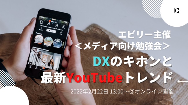 株式会社エビリー(本社:東京都渋谷区、代表取締役社長:中川恵介、以下エビリー)は、メディア向けに「DXのキホンと最新YouTubeトレンド」と題して無料オンラインセミナーを2022年2月22日(火)に開催することに決定しました。