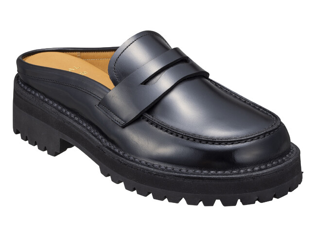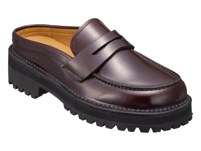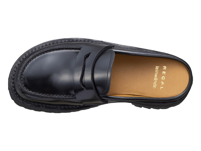 REGAL を代表するコインローファー「2177」と Regal Walker で使われる紳士用木型を組み合わせて、ウィメンズシューズとして仕上げることで、メンズライクな無骨さと対照的なセンシュアリティを心地よく織り交ぜる leinwande のアイデンティティを落とし込みました。
