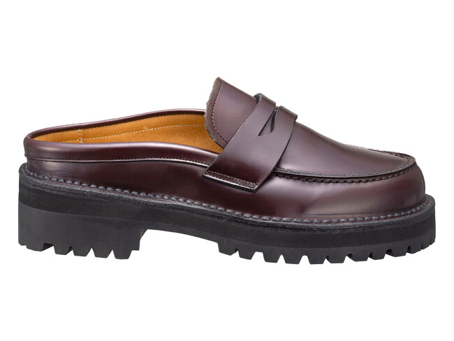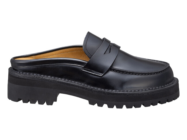 コレクテッドグレインレザーを使用した高級感のあるクラシックな雰囲気とサイドに滑らかな曲線を持たせたスリップオンデザインの他にはないリラックスしたムードが共存。しっかりとした厚さのあるビブラムソールを採用することでタフに、そして様々なファッションスタイルにフィットする一足です。