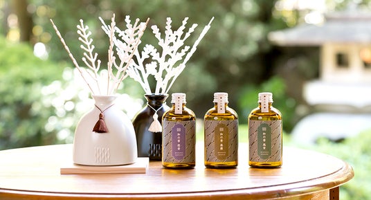「和の香」は平安時代から連綿として受け継がれてきた日本の「お香」の香りをモチーフにし、ヒノキや柚子などの和精油を用いて、枯山水に代表される日本庭園や古寺、そして日本固有の雅な世界を香りで表現したリードディフューザーです。豊かに広がる香りで部屋に居ながらにして京都や奈良の寺社仏閣を訪れ、日本庭園の前に佇んでいるような、上質な空間を提供しています。
