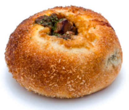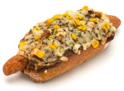 ライ麦使用の香ばしいハードパンに、ジューシーなソーセージとコク深いカレーとマヨネーズ、クルミ、コーン、チーズをトッピングしました。スパイシーなカレーと夏が旬のとうもろこしで、暑い夏でも元気が出るパンです。