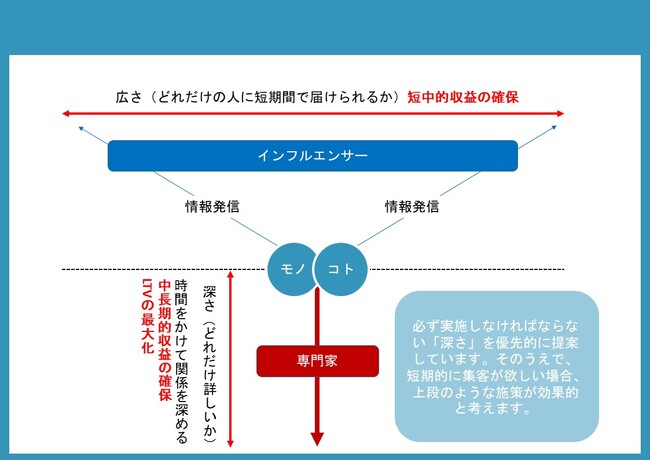 様々な施策があり、何が効果的かはステージによります。その中でも、中長期的なエンゲージメントが一番大切と考え、地域のファンになってもらえるようなアプローチに注力しております。そのような、ファンつくりがLTVの最大化へとつながると考え、優先的にご提案しております。