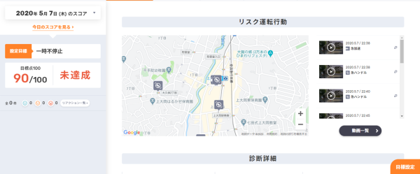 レポート検知項目 : 脇見運転・車間距離不足・一時不停止・速度超過・急ハンドル・急加速・急減速・急後退