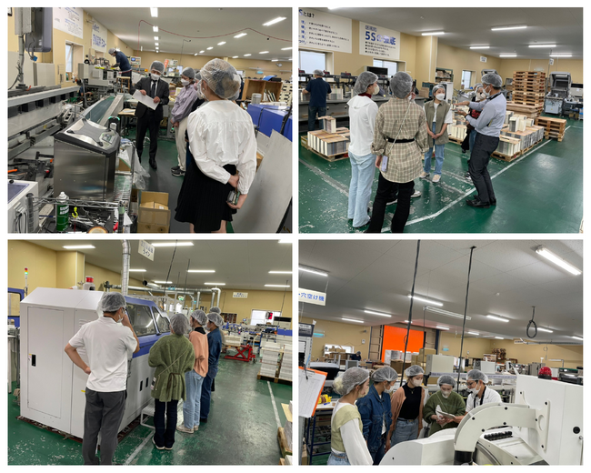 学生たちが工場見学を通じて、手帳の製造過程を学びました。担当者社員が製造工程を説明することで、学生さんたちは製造の流れについて理解が深まったと感じております。学生さんの熱意が、製造現場の担当者社員にも伝わり、結果として社員のモチベーションも向上したと捉えております。