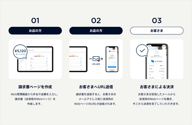 STORES 請求書決済 は、オンラインでかんたんに請求ページがつくれるサービスです。請求ページを作成しURLをお客さまに送信、カード情報をいただくだけで決済が完了し、遠方のお客さまへの請求や銀行振込の代替としてなど多様な決済シーンでご利用いただいています。