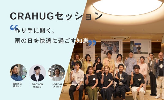 株式会社オンワードデジタルラボ(本社:東京都港区 代表取締役社長:山下 哲)が展開する、日本のモノづくりを支援するDtoCプロジェクト『CRAHUG(クラハグ)』(URL:https://www.crahug.jp/)は、6月16日(土)、匠の技術を世界に発信するサロン型ストア「SUPER ZERO Labスーパーゼロラボ(東京都南青山)」にて、消費者を招いての座談会イベントの第二弾となる「CRAHUGセッション~作り手に聞く、雨の日を快適に過ごす知恵~」を開催しました。