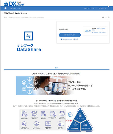 システムメンテナンスソフトNo.1(※1)のAOSデータ社が、これまで培ってきたパートナー企業と連携し、テレワークに便利なDX支援SaaSやクラウドサービスを厳選してストアに掲載しており、テレワーク 環境を整えワークスタイルのDXを支援します。