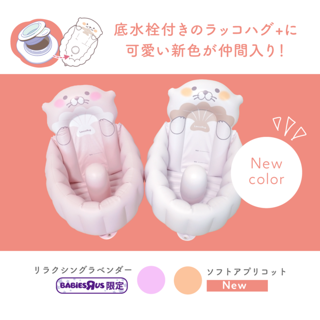 首すわり前からハンズフリー可能な新設計のベビーバス!「ラクラク底水栓」付きに新カラーが加わりました。