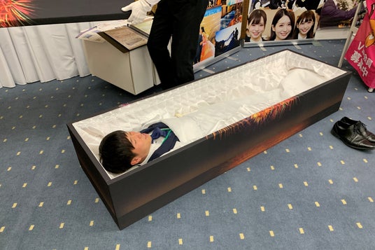 葬儀会社の棺桶体験。10年寿命が延びると言われています。(新潟会場)