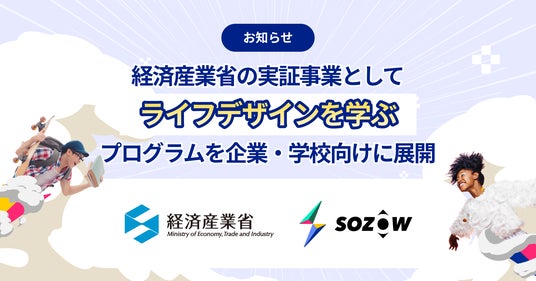 テクノロジーとエデュテイメント(教育×エンターテインメント)を活用した教育事業を展開するSOZOW株式会社(所在地:東京都品川区、代表取締役:小助川 将)は、経済産業省が実施する「ライフステージを支えるサービス導入実証等事業」(キャリア形成に資するサービス導入環境の構築実証)に採択されたことをお知らせします。