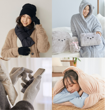 去年に引き続き、体を包み込んで暖かくするミノムシのような温活アイテム「ミノムシシリーズ」に加え、屋外で大活躍する使い勝手のいい防寒シリーズ、肌触りの良さにこだわり、かわいいデザインでお家で使うのも楽しくなるイエナカシリーズ等、新ラインナップも続々登場します。